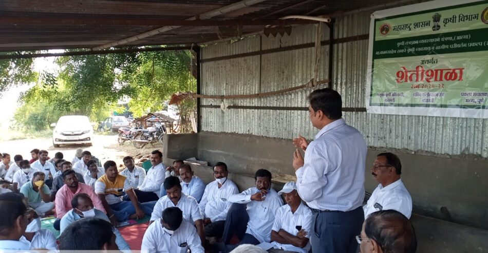 बारामती (हवेलीनामा ऑनलाइन) कृषि तंत्रज्ञान व्यवस्थापन यंत्रणा आणि बारामती तालुका सहकारी फलोत्पादन संघ पिंपळी यांचे संयुक्त विद्यमाने बाळासाहेब ठाकरे कृषि व्यवसाय व ग्रामीण परिवर्तन प्रकल्प (स्मार्ट) प्रकल्पांतर्गत डाळींब शेतीशाळा कार्यक्रमाचे आयोजन करण्यात आले. शेतीशाळेस आत्माचे व्यवस्थापक विश्वजित मगर, डाळींब उत्पादक संघाचे चेअरमन वसंतराव घनवट, द्राक्ष बागायतदार संघाचे सुनिल पवार, भाऊसाहेब काटे, शहाजी जाचक व डाळींब उत्पादक शेतकरी उपस्थित होते.