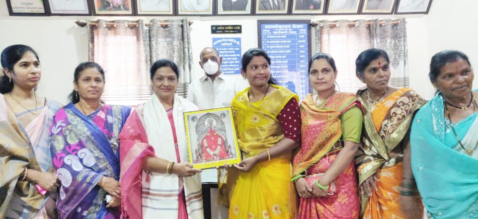 थेऊर (हवेलीनामा ऑनलाईन) पुणे जिल्हा राष्ट्रवादी काँग्रेसच्या माहिला अध्यक्षपदी निवड झाल्यानंतर भारती शेवाळे यांनी श्रीक्षेञ थेऊर येथे पहिल्यांदा भेट दिली यावेळी पूर्व हवेलीतील राष्ट्रवादीच्या माहिला पदाधिकारी तसेच कार्यकर्त्यांनी त्यांचे भव्य स्वागत केले यावेळी राष्ट्रवादीच्या पुणे जिल्हा अध्यक्षपदी त्यांची निवड झाल्याबद्दल हवेली तालुका सरचिटणीस काविता शेडगे,नम्रता कांबळे या माहिला पदाधिकारी यांनी त्यांचे शाल व पुष्पगुच्छ देऊन स्वागत केले त्यांची हस्ते श्री चिंतामणीची आरती करण्यात आली. यावेळी तालुका अध्यक्ष सुरेखा भोरडे, उपाध्यक्ष संध्या भोर, अश्विनी चोरघडे, अलका गावडे, दीपा रिकामे, माया चौधरी, सीता जाधव आदि महिला उपस्थित होत्या