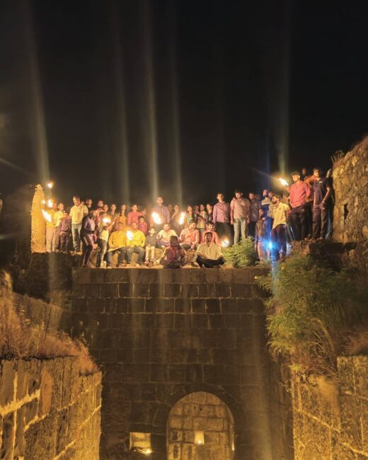 काढण्यात आली व किल्ल्याच्या महादरवाजावर तोरण लावून बाकी सर्व फुलांनी सजविण्यात आले होते.यावेळी शिवभक्तांनी हातात मशाली घेऊन नाचण्याचा आनंद साजरा केला. कार्यक्रमास लहान मुलांपासून जेष्ठ नागरिकांनी सहभाग नोंदवला.