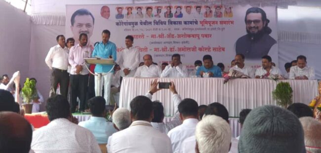थेऊर (हवेलीनामा आॕनलाईन) पूर्व हवेलीतील गावांमधील विकास कामांना गती देणार असून विविध योजनांच्या माध्यमातून आगामी काळातही विकासकामांना मोठ्या प्रमाणावर निधी उपलब्ध करुन देऊन गावांचा विकास करणार असे शिरूर – हवेलीचे आमदार अशोक पवार यांनी व्यक्त केले आहे.कोरेगाव मूळ (ता. हवेली) येथील सुमारे २ कोटी ११लाखांच्या विविध विकासकामांचे भूमिपूजन करून नवीन कामांचे उद्घाटन आमदार अशोक पवार यांच्या हस्ते करण्यात आले. यावेळी ते बोलत होते. या प्रसंगीराष्ट्रवादी काँग्रेसचे जिल्हाध्यक्ष प्रदीप गारटकर, हवेलीतालुकाध्यक्ष दिलीप वाल्हेकर, जिल्हा परिषद सदस्या कीर्ती कांचन, पंचायत समिती सदस्या हेमलता