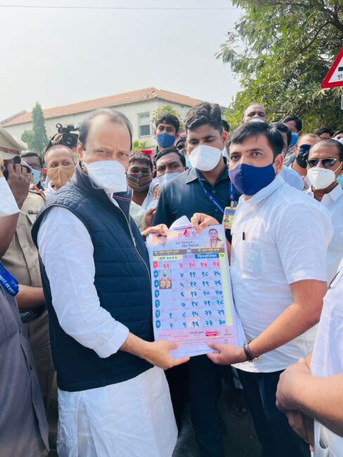 पुणे (हवेलीनामा आॕनलाईन) महाराष्ट्र राज्याचे उपमुख्यमंञी आजितदादा पवार यांच्या हस्ते आयटी नगरीच्या माजी सरपंच पुनम बुचडे व हिंजवडी माण जिल्हा परिषद गटाचे राष्ट्रवादीचे अध्यक्ष समीर बुचडे यांच्या २०२२च्या दिनदर्शिकेचे बारामती येथे प्रकाशन केले यावेळी अजित पवारांनी माजी सरपंच पुनम बुचडे,समीर बुचडे करत असलेल्या सामाजिक कामाचे कौतुक करुन त्यांनी केलेल्या वर्षभरातील कामाची माहिती जाणून घेतली याबाबत बोलताना बुचडे यांनी सांगितले हिंजवडी माण जिल्हा परिषद गटातील ५000 कुटुंबाना या दिनदर्शिका वितरित करणार असून यात रोजची आवश्यक असलेली दिन विशेष माहिती देण्यात आली असून मागील चार वर्षापासून ते दिनदर्शिकाचे परिसरात वाटप करतात