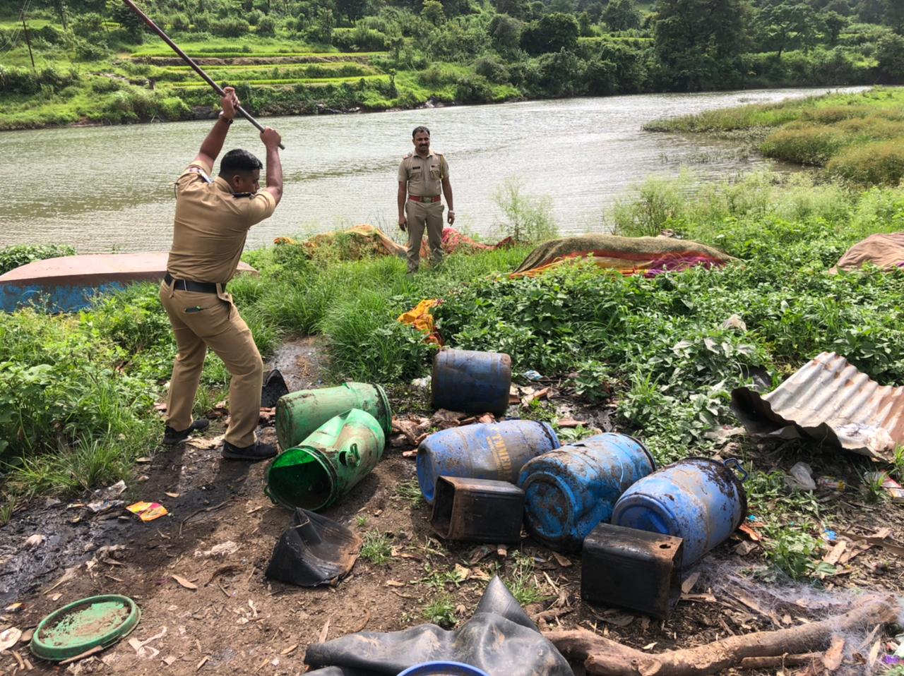 पुणे (ऑनलाइन हवेलीनामा) आंबेगाव तालुक्याच्या आदिवासी पट्ट्यात दारू धंदयावर घोडेगाव पोलिसानी धडक कारवाई करत पाच ठिकाणी हातभट्ट्या नष्ट केल्या. यात पाचशे लिटर कच्चे रसायन, दारू बनविण्यासाठी वापरात येणारे नवसागर, गुळ जप्त करून नष्ट केला. ही कारवाई केवळ दारू भट्ट्यावर केली नाही तर नवसागर व गुळ विकरणा-या दुकानदारांवरही गुन्हे दाखल केले आहे.