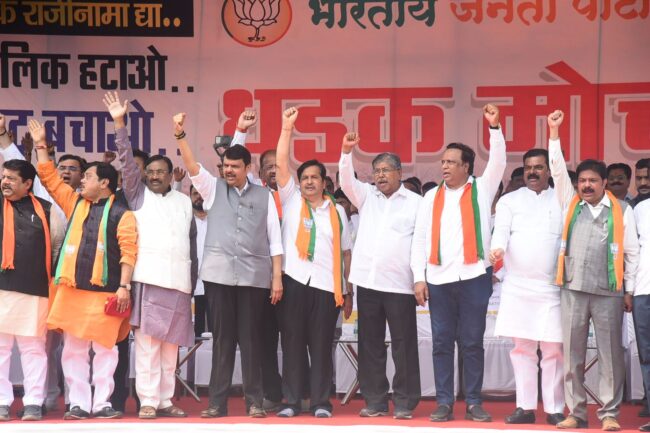 विधानसभेचे विरोधी पक्षनेते देवेंद्र फडणवीस यांच्या नेतृत्वाखाली भारतीय जनता पार्टी नवाब मलिक यांच्या राजीनाम्यासाठी संघर्ष करेल. गावोगावी, रस्तोरस्ती भाजपा निदर्शने करेल. दाऊदला संरक्षण देणाऱ्या महाविकास आघाडीच्या नेत्यांना फिरणे मुश्किल करू आणि हा संघर्ष यशापर्यंत नेऊ असा इशारा त्यांनी दिला. ते म्हणाले की, पूजा चव्हाणच्या आत्महत्येनंतर जनतेमध्ये संताप उसळल्यानंतर शिवसेनेचे मंत्री संजय राठोड यांचा राजीनामा घेतला. गृहमंत्री अनिल देशमुख यांच्यावरील महिना शंभर कोटीच्या वसुलीबाबत सीबीआय चौकशीचा आदेश उच्च न्यायालयाने दिल्यानंतर ताबडतोब देशमुख यांनी राजीनामा दिला. नवाब मलिक यांना न्यायालयाने ईडी कोठडीत ठेवण्याचा आदेश दिल्यानंतर त्यांच्याही राजीनाम्याचा निर्णय आघाडीच्या प्रमुखांनी घेतला होता. पण नंतर दाऊदचा असा दबाव आला की राजीनाम्याचा निर्णय मागे घेण्यात आला. दाऊदच्या दबावाखाली काम करणाऱ्या सरकारला हटविण्यासाठी भाजपा रस्त्यावर उतरली आहे.