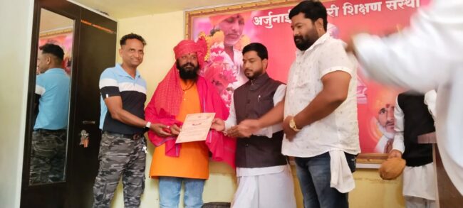 थेऊर (हवेलीनामा ऑनलाईन) अर्जुनाई सेवाभावी संस्था संचालित अर्जुनाई वारकरी शिक्षण संस्थेच्या वतीने आळंदी देवाची पुणे, येथे गुणगौरव सोहळा पार पडला, अर्जुनाई वारकरी शिक्षण संस्थेच्या वतीने दिनांक २५ रोजी गुणगौरव सोहळा पार पडला. समाजामध्ये विविध क्षेत्रात प्रमार्थिक, सामाजिक, राजकीय, पत्रकारिता, कला क्षेत्रात सतत जायचे योगदान आहे, अशा मंडळी चा गुणगौरव पुरस्कार सोहळा पार पडला, त्यामध्ये संस्थेमधील विद्यार्थ्यांचे कला कौशल्य व त्याना प्रमाणपत्र देउन सन्मानित करण्यात आले, त्या निमित्त जालिंदर बपाजी जगताप यांचं भव्य अन्न दान पार पडले.या कार्यक्रमाचे सूत्रसंचालन नागनाथ महाराज बहिर यांनी केले, कार्यक्रम व्यवस्थापन व सत्कार चेतन महाराज माथेफोड शास्त्री अध्यक्ष अर्जुनाई वारकरी शिक्षण संस्था यांनी केले, सामाजिक क्षेत्रात काम करणाऱ्या व्यक्तींचा यावेळी सत्कार करण्यात आला, त्यामध्ये विशेष सुरेश उगले पी.एस.आय, चिंचवड ह.भ.प,माऊलीं महाराज लाड, मराठी वृत्तपत्र तपासपथक उप-संपादक राम भंडारी, सचिन कुंजीर, अमोल खोले, अमन शेख अशा मंडळीचा गुणगौरव पुरस्कार सोहळा पार पडला, त्या मध्ये संस्थेमधील विद्यार्थ्यांचे कला कौशल्य व त्याना प्रमाणपत्र देउन सन्मानित करण्यात आले.