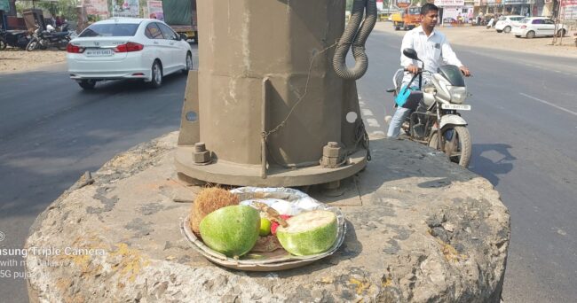 थेऊर (हवेलीनामा ऑनलाईन) पुणे सोलापूर महामार्गावर थेऊर फाटा मुख्य चौकात हाय मॅक्स लाईट खांबाशेजारी अंधश्रद्धेतून एक उतारा टाकलेला होता हा उतारा या महामार्गाने जाणाऱ्या प्रत्येकाचे लक्ष केंद्रित करत होता पुरोगामी महाराष्ट्रामध्ये अशा प्रकारच्या अंधश्रद्धेला खतपाणी घालण्याचे काम आजही मोठ्या प्रमाणावर चालू असून अनेक भोंदू आपला प्रपंच यावर चालवत असल्याचे दिसून येत आहे राज्यात अंधश्रद्धा विरोधी कायदा अस्तित्वात अजूनही अनेक जणांच्या भोळेपणाचा फायदा घेऊन त्यांना गंडा घालण्याचे काम काही लोक करत आहेतमहाराष्ट्रामध्ये अनेक पंथ जाती प्रचलित असल्या तरीही समाज प्रबोधनाचे काम संत महंतांनी सातत्याने करताना दिसते परंतु काही भाबडे नागरिक अशा अंधश्रद्धेला बळी पडताना दिसतात भूत बाधा होणे भानामती अशा अनेक गोष्टी समाजात प्रचलित आहेत आपल्यावर कोणी अशी काळी जादू केली म्हणून मांत्रिका कडे जाऊन यावर उपाय करण्याचे व आघोरी कृत्य करण्याचे काम सातत्याने चालू असते यापैकीच एक म्हणजे उतारा होय असे उतारे पौर्णिमा अमावस्या अशा विशिष्ट दिवशी रस्त्यावर अथवा एखाद्या ठिकाणी टाकल्याची दिसून येते यामुळे नागरिकांमध्ये कुतूहल तर कधी भीती सुद्धा निर्माण होताना दिसतेअंधश्रद्धा निर्मूलन समिती अशा कृती विरोधात कायम आवाज उठवते परंतु अनेकांच्या डोक्यातून ही संकल्पना निघताना दिसत नाही विशेषतः लहान मुलांवरती अशा वाईट गोष्टींचा जास्त प्रभाव पडत असल्याचा नागरिकांचा समाज आहे