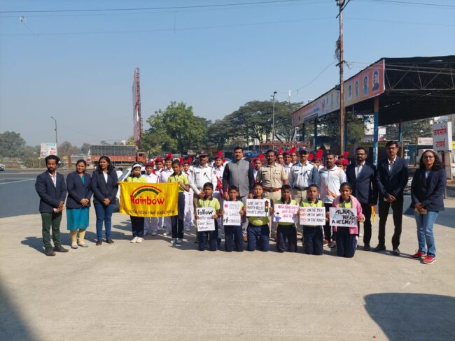 पुणे शहर वाहतूक शाखेचे पोलीस उपनिरीक्षक रामदास जाधव रेनबो इंटरनॅशनल स्कूलचे संस्थापक नितीन काळभोर यांच्या मार्गदर्शनाखाली शाळेच्या आर एस पी विभागाचे विद्यार्थी टोल नाक्यावर होतात फलक घेऊन महामार्गावरील वाहन चालकांना वाहतुकीच्या नियमांचे पालन करण्यास सांगत होते आणि ज्या वाहन चालकांनी सीट बेल्ट लावलेला नसेल त्यांना सीटबेल्ट लावून वाहतुकीचे नियमन पाळण्याचे आवाहन केले यावेळी नितीन काळभोर यांनी विद्यार्थ्यांना मार्गदर्शन करताना सांगितले की महामार्गावरील होणारे अपघात युवक मोठ्या प्रमाणावर बळी पडतात यासाठी प्रत्येकाने वाहतुकीचे नियम पाळाव