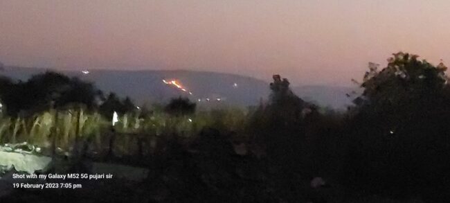 आज याच डोंगरावर लागलेल्या वणव्याचे चित्र लांबून दिसत होते.वन विभागाकडून हा वणवा विझवण्यासाठी शर्तीचे प्रयत्न होणे आवश्यक आहे.यात दुर्मिळ वनसंपदा तसेच वन्यजीव भक्ष्य पडण्याची भिती निर्माण झाली आहे.