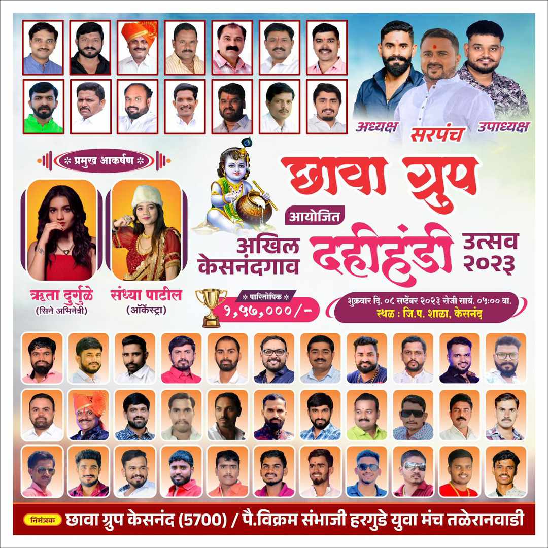 ८ सप्टेंबर रोजी सायंकाळी ५ वाजता दहीहांडी उत्सवाचा शुभारंभ होणार असून या कार्यक्रमासाठी सिने अभिनेत्री फुलपाखरू फेम ऋता दुर्गुळे उपस्थित राहणार आहे. तर मनोरंजना साठी संध्या पाटील ऑर्केस्ट्रा असणार असल्याचे उत्सव कमिटीचे अध्यक्ष दिनेश हरगुडे व उपाध्यक्ष विक्रम हरगुडे यांनी सांगितले.छावा गृप या कार्यक्रमा बरोबरच सामाजिक बंधिलकी जोपासत असताना ग्रुप च्या सहकार्याने बाबा महाराज टेकडी वर १० हजार झाडे लावण्यात येणार असून त्याचे संगोपन व व्यवस्थापन छावा ग्रुप करणार आहे. तरी प्रत्येक ग्रामस्थांने किमान दोन तरी झाडे लावावीत असे आवाहन करण्यात आले आहे. तसेच गावातील गरजू व हुशार विद्यार्थ्यांना छावा ग्रुप च्या माध्यमातून शैक्षणिक सहकार्य करण्यात येणार आहे.केसनंद गावा मधील मानाच्या दहीहंडी उत्सवाचे नियोजन व व्यवस्थापन छावा ग्रुप चे संस्थापक केसनंद गावचे विद्यमान सरपंच दत्ताआबा हरगुडे, अध्यक्ष संदिप आप्पा ढोरे, यांच्या मार्गदर्शना खाली दहीहंडी उत्सव कमीटीचे सचिन आप्पा हरगुडे, उमेश मोरे, विशाल हरगुडे, अॅड अनिल हरगुडे, निखिल ढोरे, स्वप्नील सातव, सागर हरगुडे, गणेश गावडे, आजित कांचन, गणेश कांचन, स्वप्लीन बांगर, भरत वाबळे व इतर संचालक मंडळ करणार आहेत