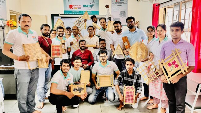 थेऊर (हवेलीनामा वृत्तसमूह) ग्रामीण विकास मंत्रालय, भारत सरकार व बँक ऑफ बरोडा यांच्या संयुक्त विद्यमानाने पुण्यातील थेऊर फाटा येथे युवकाना उद्योजक बनविण्यासाठी १८ ते ४५ वयोगटातील ग्रामीण भागातील युवक व युवतीना १३ दिवसीय बांबू क्राफ्ट या विषयाचे यशस्वीरित्या प्रशिक्षण देण्यात आले. प्रशिक्षणा साठी बांबू विषयाचे तज्ज्ञ प्रशिक्षक सागर पवार लाभले होते त्यामध्ये त्यानी बांबू पासून अनेक कलाकुसरीच्या वस्तू कशा तयार करायचे तसेच हा व्यवसाय कमी खर्चात उत्तम रित्या कसा करू शकतो याचे ज्ञान विद्यार्थ्यांना दिले.