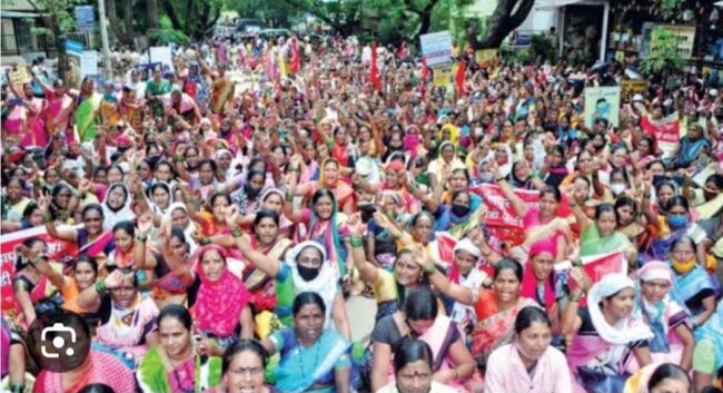 पुणे- (हवेलीनामा वृत्तसमूह) महाराष्ट्र राज्य अंगणवाडी कर्मचारी कृती समितीचा अंगणवाडी सेविकांचा विराट मोर्चा नागपूर हिवाळी अधिवेशनात पोहचला आहे. नागपूरच्या टेकडी रोड परिसरात मोर्चा पोहचला आहे. विविध मागण्यासाठी राज्यातील अंगणवाडी बंद ठेवण्यात आल्या आहेत. अंगणवाडी सेविकांना शासकीय कर्मचाऱ्यांचा दर्जा मिळालाच पाहिजे भाऊबीजेच्या मानधनात भरीव वाढ झालीच पाहिजे अंगणवाडी कर्मचाऱ्यांना शासकीय पेन्शन मिळालीच पाहिजे अंगणवाडी कर्मचाऱ्यांना इतर राज्यांप्रमाणे वेतन वाढ वेतनश्रेणी देण्यात यावी यासह विविध मागण्यांसाठी अंगणवाडी सेविकांनी कामबंध आंदोलन करून नागपूर हिवाळी अधिवेशनावर मोर्चा काढलेला आहे गेली 48 वर्षापासून अंगणवाडीतील एकात्मिक बालविकास योजनात अंगणवाडी सेविका मदतनीस 48 वर्षापासून काम करत आहेत अनेक वर्षापासून त्या आपल्या मागणीसाठी लढा देत आहेत परंतु राज्य शासन अंगणवाडी सेविकांच्या प्रश्न सोडवण्यासाठी गंभीर नाही आणि म्हणून चार डिसेंबर 2023 पासून राज्यात काम बंद आंदोलन सुरू केले असून बेमुदत संपाची १७ नोव्हेंबरला राज्य सरकारला नोटीस दिले आहे बैठका झाल्या परंतु बैठकांमधून काही समाधानकारक निर्णय न लागल्यामुळे आज 12 व्या दिवशी 15 डिसेंबर रोजी नागपूरला हिवाळी अधिवेशनावर भव्य आक्रोश मोर्चा आयोजित केला महाराष्ट्रातील जवळपास २ लक्ष 10000 अंगणवाडी कर्मचारीचे प्रतिनिधित्व म्हणून पंचवीस हजार अंगणवाडी सेविका मदतनीस या मोर्चात सहभागी झाले आहेत ग्रॅज्युएटी मिळावी तसेच राज्य शासनाकडून शासकीय कर्मचाऱ्यांचा दर्जा मिळाला पाहिजे जोपर्यंत राज्य शासन शासकीय कर्मचाऱ्यांचा दर्जा देत नाही तोपर्यंत अंगणवाडी व मिनी अंगणवाडी सेविकांना दरमहा किमान वेतन 26 हजार व मदतनिसांना 20 हजार मानधन दिले पाहिजे तसेच रिटायरमेंट नंतर निर्वाह भत्ता अंगणवाडी सेविका मदतनीस यांना मिळाला पाहिजे अशा विविध मागण्यासाठी राज्यभर अंगणवाडी कृती समितीच्या वतीने मोर्चा सुरु आहेत राज्य सरकार दखल घेऊन मागण्या मान्य करणार का याकडे संपूर्ण राज्यातील अंगणवाडी कर्मचाऱ्यांचे लक्ष लागले आहे
