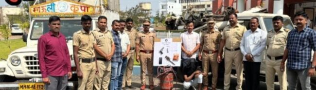 पुणे -(हवेलीनामा वृत्तसमूह) पुणे ग्रामीणच्या स्थानिक गुन्हे अन्वेषण व सुपा पोलिसांनी दरोड्याच्या तयारीतील टोळीला बेड्या ठोकल्या. आरोपीकडून गावठी पिस्टल, मिरची पावडर, अॅडजेटेबल पाना, मोबाईल, ४ पिकअप, गॅस पाईपसह वाहने कट करण्याचे ग्लॅन्डर असा १२ लाख ९६ हजार १०० रुपयांचा मुद्देमाल जप्त करण्यात आला. गणेश चंद्रभान गायकवाड (रा. खांडगाव, ता. संगमनेर, जि. अहमदनगर), अजित अरूण ठोसर, गोविंद शिरसाठ (दोन्ही रा. मातकुळी, ता. आष्टी, जि. बीड), सीमा रावसाहेब गायकवाड (रा. बस स्टॅन्ड पाठीमागे फर्निचर दुकानजवळ जालना) आणि अजित ठोसर अशी अटक केलेल्यांची नावे आहेत.