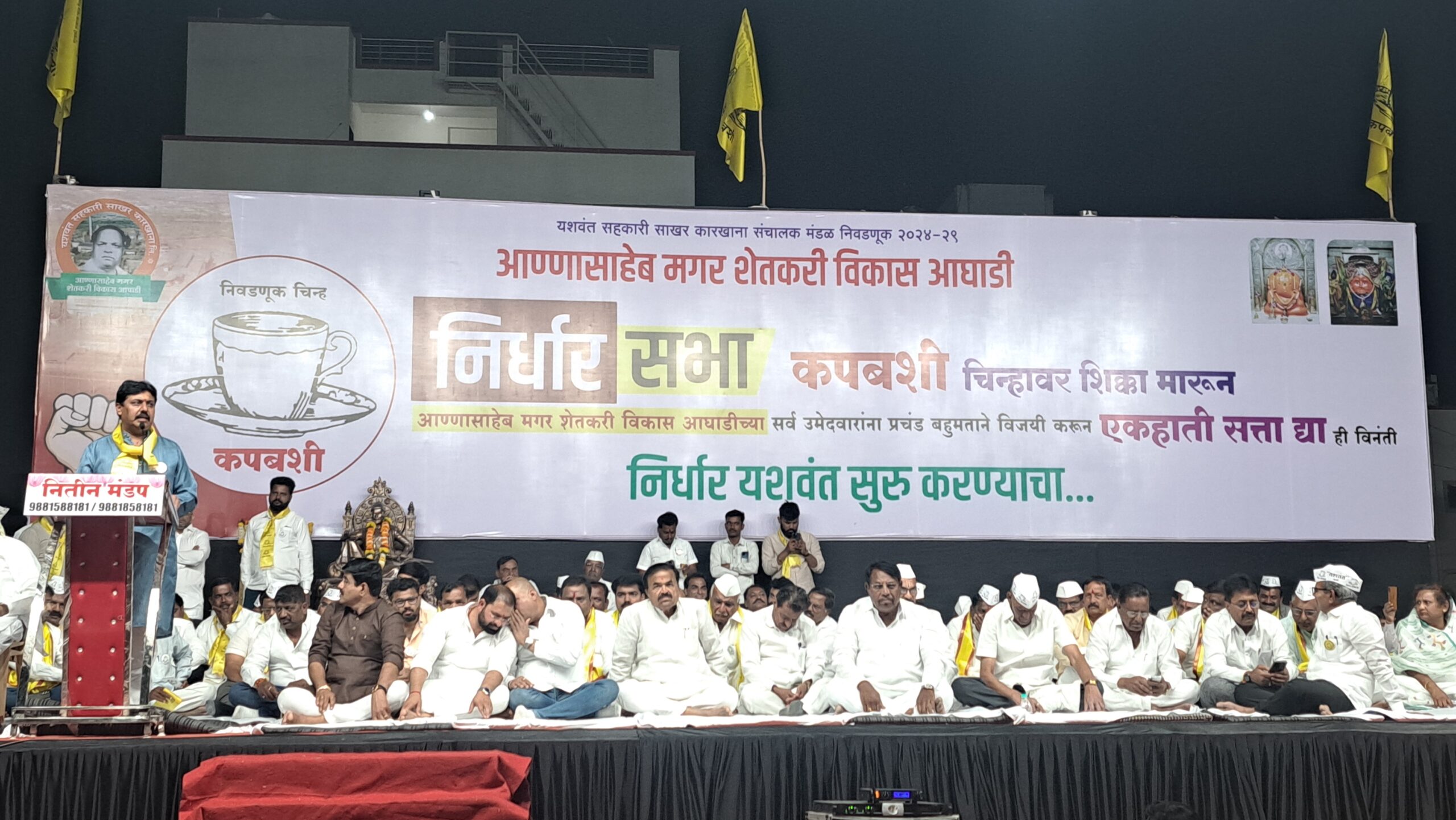 पुणे- ( हवेलीनामा वृत्तसमूह) आर्थिक संकटाच्या खाईत कारखान्याला लोटून यशवंत सहकारी साखर कारखाना बंद पाडणाऱ्या, खरेदी विक्री संघाची जागा बिल्डरच्या घशात घालणाऱ्या,बिल्डर धार्जिण्या लोकांनी कारखान्याची २५० एकर जमीनीवर डोळा ठेवून कारखाना खाजगी करायला निघालेल्या अशा बिल्डर हित जोपसणार्या विरोधी पॅनेलला तुम्ही मतदान करणार का? असा सवाल कृषी उत्पन्न बाजार समितीचे माजी सभापती प्रताप गायकवाड यांनी उपस्थित असलेल्या सभासदांलि केलाआहे. दुसरीकडे मतदारांनी आमचे पॅनल निवडून दिल्यास शेतकरी, कामगार यांची थकित देणी प्राधान्याने देऊन कारखाना सुरू करण्यात येईल, असे आश्वासन देखील प्रताप गायकवाड यांनी दिले.थेऊर (ता. हवेली) येथील यशवंत सहकारी साखर कारखान्याची निवडणूक ९ मार्च रोजी होत आहे. यानिमित्त अण्णासाहेब मगर शेतकरी विकास आघाडी पॅनेलची सांगता सभा थेऊर फाटा येथे पार पडली. यावेळी उपस्थित सभासदांना मार्गदर्शन करताना प्रताप गायकवाड यांनी वरील आश्वासन दिले.यावेळी पॅनेल प्रमुख व हवेली कृषी उत्पन्न बाजार समितीचे विद्यमान संचालक प्रकाश जगताप, प्रशांत काळभोर, माजी पंचायत समिती सदस्य बाळासाहेब चौधरी, हिरामण काकडे, कात्रज दुध संघाचे जेष्ठ संचालक गोपाळ म्हस्के, पुणे जिल्हा मध्यवर्ती सहकारी बँकेचे संचालक विकास दांगट, माजी आमदार संभाजी कुंजीर, “यशवंत”चे माजी संचालक पंढरीनाथ पठारे,माणिक गोते, पांडुरंग काळे, बाजार समितीचे संचालक शशिकांत गायकवाड, प्रकाश हरपळे, लक्ष्मण केसकर,मिलिंद हरगुडे, पोपट गायकवाड, विकास तुपे, शंकर हरपळे, सोरतापवाडीचे माजी सरपंच सागर चौधरी,कदमवाकवस्तीचे माजी सरपंच चित्तरंजन गायकवाड,कुंजीरवाडीचे माजी सरपंच संतोष कुंजीर, शिंदवणे गावचे माजी सरपंच आण्णा महाडिक, सचिन मचाले,सुखदेव कोतवाल, प्रशांत घुले, अशोक कसबे, सचिन सातव, सागर कांचन, मोरेश्वर काळे, तानाजी चौधरी.विकास चौधरी, सचिन तुपे, शामल पवार जवळकर, कृषीराज चौधरी, अमोल चौधरी आदी मान्यवर उपस्थित होते. विरोधकांची नजर फक्त कारखान्याच्या मालकीच्या अडीचशे एकरवर असल्याचा, आरोपही गायकवाड यांनी यावेळी केला.प्रताप गायकवाड पुढे म्हणाले, “यशवंत” कारखाना तेरा वर्षांपूर्वी नैसर्गिक कारणामुळे बंद पडला नव्हता, तर समोरच्या पॅनेलमधील चौकडीमुळे बंद पाडला होता. याची कारणे या निवडणुकीच्या निमित्ताने प्रत्येक ऊस उत्पादक शेतकरी आणि सभासदांच्या घराघरांमध्ये पोहोचले आहेत. त्यामुळे या चौकडीच्या विरोधात सर्व सभासदांनी निर्धार करून आण्णासाहेब मगर शेतकरी विकास आघाडीच्या सर्व उमेदवारांना प्रचंड बहुमताने विजयी करून एकहाती सत्ता देऊन यशवंत सुरू करण्याचा संकल्प करावा, असंही गायकवाड म्हणाले.यावेळी पॅनेल प्र