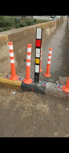 सोलर लाईट स्टड हे सौरऊर्जेचा वापर करून आपोआप चार्ज होऊन रात्रीच्या अंधारात चमकत राहतात. फ्लेक्सिबल स्प्रिंग पोस्ट बॅरियर हे वाहनचालकाचे लक्ष वेधून घेते व दिशा दर्शक सूचना देण्याचे काम करते.