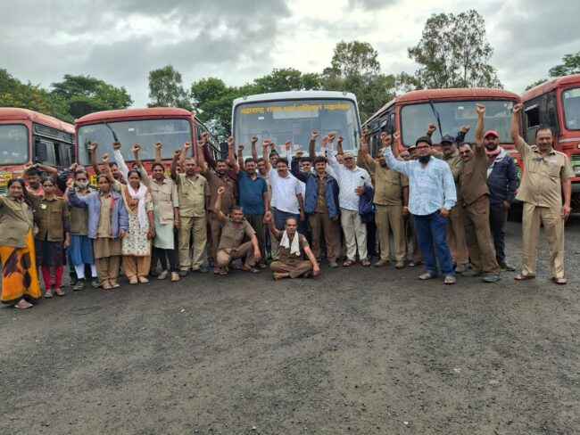 पुणे (हवेलीनामा वृत्तसमुह) महाराष्ट्रातील एसटी कर्मचाऱ्यांनी पुकारलेल्या संपामुळे वाहतूक सेवेवर परिणाम झाला असून महामार्गावर तुरळक बस धावताना दिसून येत आहेत. एस टी कर्मचाऱ्यांनी सन २०२१मध्ये मोठे आंदोलन केले होते. त्यावेळी जवळपास दोन महिने बसची चाके थांबली होती. त्यानंतर आता पुन्हा राज्य परिवहन महामंडळाचे कर्मचारी संपावर गेली आहेत. राज्यातील एसटी कर्मचाऱ्यांनी आपल्या विविध प्रलंबित मागण्यांसाठी पुन्हा संप पुकारला आहे. आर्थिक बाबी, खासगीकरण अशा विविध मागण्या विधानसभेची आचारसंहिता लागण्याआधी मान्य करा, असा इशारा देत एसटी कर्मचारी संघटनेने आजपासून बेमुदत संप पुकारला आहे. ऐन गणेशोत्सव काळात संप पुकारल्याने गणेशोत्सवासाठी गावी जाणाऱ्या चाकरमान्यांसह सर्वसामान्यांची मोठी गैरसोय होण्याची शक्यता आहे.