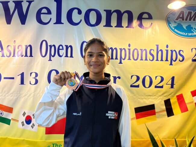 पुणे (हवेलीनामा वृत्तसमुह) चांगाई (थायलंड) येथे नुकत्याच पार पडलेल्या आशियाई मिनी गोल्फ स्पर्धेत एमआयटी आर्ट, डिझाईन व टेक्नॉलॉजी विद्यापीठाच्या स्कूल ऑफ बायोइंजिनिअरिंगची विद्यार्थिनी प्रांजली विनोद सुरदुसे हिने सांघिक गटात भारताचे प्रतिनिधित्व करताना कांस्य पदकाला गवसणी घातली आहे.