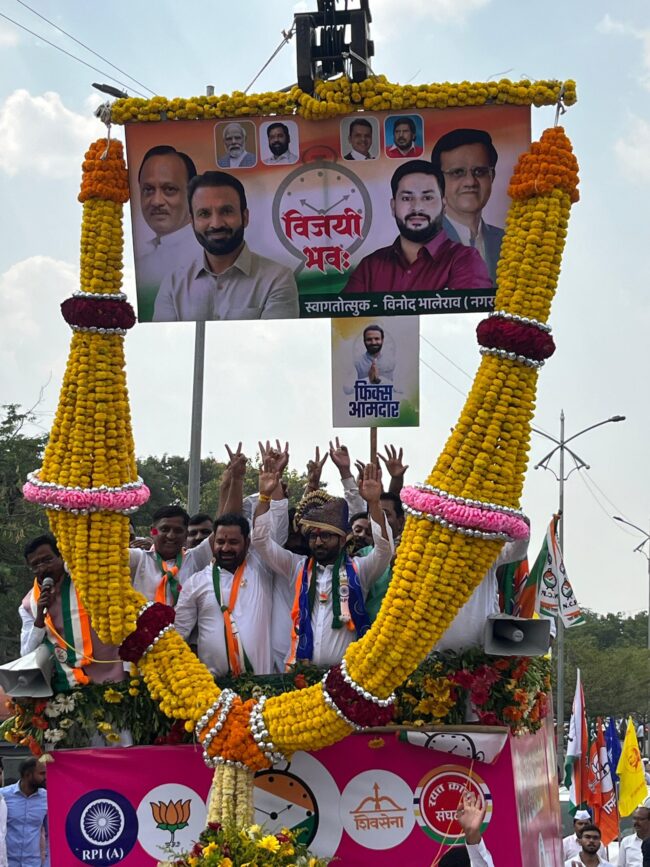 थेऊर- (हवेलीनामा वृत्तसेवा बापूसाहेब धुमाळ) शिरूर हवेली विधानसभा मतदार संघातून राष्ट्रवादी काँग्रेस पार्टी अजित पवार गटाच्या वतीने ज्ञानेश्वर कटके यांनी आज मोठे शक्ती प्रदर्शन करत उमेदवारी अर्ज दाखल केला यावेळी हजारोचा जनसमुदाय उपस्थित होता यावेळी बोलताना अनेक वक्त्यांनी ज्ञानेश्वर कटके यांनाच घड्याळाच्या चिन्हासमोरील बटन दाबून प्रचंड बहुमताने विजयी करा व हवेलीत बदल घडवा आणि घोडगंगा तसेच हवेलीतील बंद पडलेल्या यशवंत चालू करण्यासाठी बळ द्या असे आव्हान बऱ्याच व्यक्तींनी केले. यावेळी हवेलीतील अनेक गावचे सरपंच माजी उपसरपंच ग्रामपंचायत सदस्य तसेच आधी माजी सदस्य सोसायटीचे पदाधिकारी मोठ्या संख्येने उपस्थित होते त्यामुळे शिरूर हवेलीला माऊली वादळ आल्याचे चित्र निर्माण झाले होते.यावेळी बोलताना अनेक वक्त्यांनी शिरूर हवेली असा भेदभाव न बाळगता फक्त आणि फक्त अजित पवार या राष्ट्रीय नेतृत्वाकडे पाहूनच राष्ट्रवादी काँग्रेस पार्टीच्या घड्याळाच्या चिन्हावर माऊली आबांना प्रचंड बहुमताने विजयी करायचं असा सुतवाच केला यावेळी काढलेल्या रॅलीला प्रचंड जनसमुदाय उपस्थित होता. महाविकास आघाडीच्या वतीने राष्ट्रवादी काँग्रेस पार्टी शरदचंद्रजी पवार गटाचे विद्यमान आमदार अशोक बापू पवार यांना उमेदवारी जाहीर करण्यात आले असून त्यांनी शक्ती प्रदर्शन करत आपला उमेदवारी अर्ज दाखल करा केला आहे त्यालाच कडवा आव्हान निर्माण करत हवेलीमध्ये प्रथमच संधी मिळालेले माऊली आबा कटके यांनी आपला उमेदवारी अर्ज मंगळवारी मोठी शक्ती प्रदर्शन करतदाखल केलेला आहे