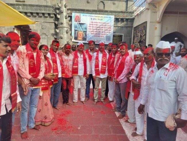 पुणे -( बापू धुमाळ, हवेलीनामा वृत्तसेवा) पुणे जिल्ह्यातील पुरंदर तालुक्यातील प्रसिद्ध असलेले श्री क्षेत्र वीर येथील श्रीनाथ म्हस्कोबा देवस्थान ट्रस्टच्या अध्यक्षपदी वीर (ता.पुरंधर) येथील राजेंद्र धुमाळ तर उपाध्यक्षपदी अमोल बाळासाहेब धुमाळ यांची सर्वानुमते निवड करण्यात आली, तसेच अमोल धोंडीबा धुमाळ यांची खजिनदारपदी व काशिनाथ धुमाळ यांची सचिवपदी निवड करण्यात आली.श्रीनाथ म्हस्कोबा सांस्कृतीक भवन येथे सर्वसाधारण सभेचे आयोजन करण्यात आले होते. यावेळी भाविक आणि ग्रामस्थ उपस्थित होते. यावेळी सभेमधे सर्वांच्या एकमताने ही निवड करण्यात आली. यावेळी सुनिल धुमाळ, विराज धुमाळ, श्रीकांत थिटे, बाळासाहेब समगिर, जयवंत सोनावणे, प्रमिला देशमुख, अलका जाधव यांची विश्वस्तपदी निवड करण्यात आली. यावेळी नवनर्वाचित विश्वस्तांचे गुलाल उधळून स्वागत करण्यात आले. श्रीनाथ म्हस्कोबा देवस्थान ट्रस्ट आणि कैकाडी समाजाच्या माध्यमातून रविवारी (दिनांक १५)श्रीनाथ म्हस्कोबा मंदिराच्या दर्शनी भागातील दरवाज्याचे चांदीचे काम आणि राजिकदेवीचा मुखवटा, पादुका यांचा अर्पण सोहळा आयोजित केला असून, त्यादिवशी भैरवचंडी होम संत ज्ञानेश्वर महाराज संस्थान कमिटीचे योगी निरंजननाथ महाराज यांच्या उपस्थिती मध्ये होणार आहे. त्याप्रसंगी महाप्रसादाचे आयोजन करण्यात आले आहे. भाविकांनी या सोहळ्याचा आणि महाप्रसादाचा लाभ घ्यावा असे आवाहन देवस्थान ट्रस्टमार्फत करण्यात आले आहे.