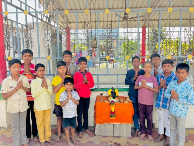 थेऊर -(हवेलीनामा वृत्तसेवा) थेऊर (ता.हवेली) येथील चव्हाण वस्ती येथे शाळेतील लहान विद्यार्थी यांनी हिंदवी स्वराज्याचे संस्थापक श्रीमंत योगी राजाधिराज छत्रपती शिवाजी महाराज यांची जयंती मोठ्या उत्साहात म्हसोबा मंदिर येथे साजरी केली. यावेळी चिमुकल्या शिवभक्तांनी छत्रपती शिवाजी महाराज यांच्या प्रतिमेचे पूजन करुन जय जिजाऊ जय शिवराय, छत्रपती शिवाजी महाराज की जय या जयघोषाने मंदीर परिसर दुमदुमला यावेळी सूरज नीतेश जाधव, रोशन नीतेश जाधव ,ओमकार सनी घाडगे,ओमकार सचिन चव्हाण,देवांश सोमनाथ जाधव,समर दीपक जाधव,सार्थक दीपक जाधव, हर्षद अमित चव्हाण, अथर्व अमित चव्हाण,
