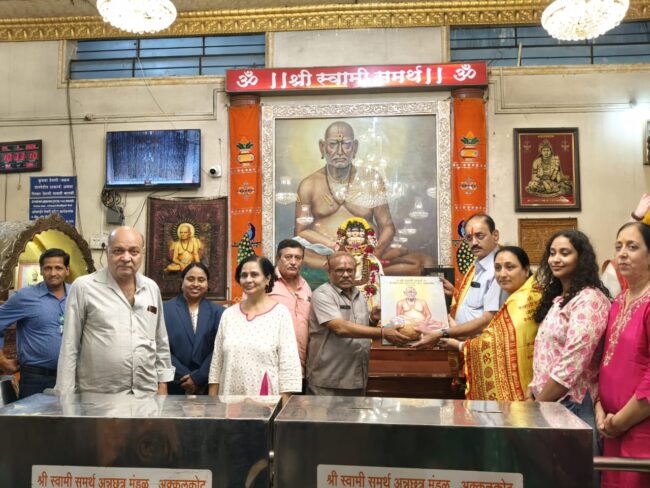 अक्कलकोट : (हवेलीनामा वृत्तसेवा) श्री स्वामी समर्थ अन्नछत्र मंडळाचे संस्थापक अध्यक्ष जन्मेजयराजे विजयसिंहराजे भोसले यांच्या मार्गदर्शनाखाली व कार्यकारी अध्यक्ष अमोलराजे जन्मेजयराजे भोसले यांच्या नेतृत्वाखाली न्यासाकडून सामाजिक, संस्कृती, शैक्षणिक, क्रीडाविषयक, आपदग्रस्थाना मदत, आरोग्यविषयक आदी राबवीत असलेले उपक्रम हे उल्लेखनीय असल्याचे मनोगत प्रमुख जिल्हा व सत्र न्यायाधीश मनोज शर्मा, सोलापूर यांनी व्यक्त केले ते श्री स्वामी समर्थ अन्नछत्र मंडळ येथे सहपरिवार आले असता न्यासाचे उपाध्यक्ष अभय खोबरे यांच्या उपस्थितीत सचिव शामराव मोरे यांच्या हस्ते श्रींची प्रतिमा, कृपावस्त्र, श्रीफळ देऊन त्यांचा सत्कार करण्यात आला. या प्रसंगी ते बोलत होते. त्यांच्या समवेत अक्कलकोटचे प्रथम वर्ग न्याय दंडाधिकारी एम.एम. कल्याणकर, सहप्रथम न्याय दंडाधिकारी श्रीमती एन.ए.एल.शेख, न्यासाचे कायदेविषयक सल्लागार अॅड. संतोष खोबरे, न्यायालीन लिपिक स्वप्नील मोरे, पो.ह. अशोक जमादार आणि सोलापूर न्यायालीन कर्मचारी उपस्थित होते.