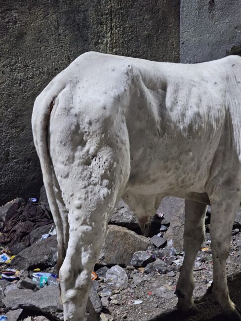 थेऊर (हवेलीनामा वृतसमूह) श्रीक्षेत्र थेऊरमध्ये अनेक मोकाट गोधन फिरताना दिसून येत असून यातील काही गायीना लंपीची लागण झाल्याचे दिसून येत आहे. हा चमडीचा आजार असून यामुळे जनावराच्या त्वचेवर फोडासारखे व्रण येतात कालांतराने यात आळ्या होऊन हा आजार गंभीर स्वरूप धारण करतो. या जनावरापासून इतर गुरांना संसर्ग होण्याचा धोका असतो.