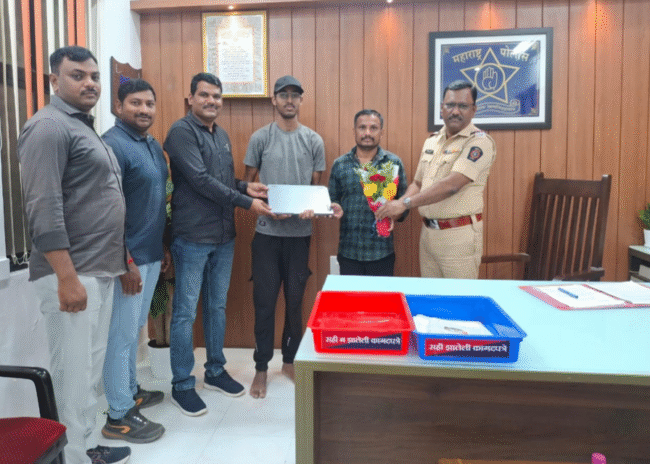 त्यांनी पुन्हा लोणी काळभोरला आल्यावर लोणी काळभोर पोलीस स्टेशनला त्यांची लॅपटॉप बॅग रिक्षामध्ये विसरली असल्याचे सांगितले यावर लोणी काळभोर पोलीस ठाणेचे वरिष्ठ पोलीस निरीक्षक राजेंद्र पन्हाळे यांनी तपास पथकाचे प्रभारी अधिकारी सहाय्यक पोलिस निरीक्षक कृष्णा बाबर तसेच पोलीस अंमलदार राहुल कर्डीले, प्रशांत सुतार यांना एम. आय. टी. कॉर्नर भागातील सी.सी.टी.व्ही. कॅमेरे चेक करण्याबाबत सूचना केल्या.त्याच दरम्यान रिक्षाचालक मोहन गणपती चंदनशिवे (वय ३२ वर्षे धंदा रिक्षा ड्रायवर रा. धुमाळमळा, थेऊर फाटा, कुंजीरवाडी, ता. हवेली) यांनी अर्थ पिंपरे यांच्या मोबाईलवर फोन केला व त्यांची लॅपटॉप बॅग रिक्षा मध्ये असल्याचे सांगितले असता रिक्षाचालक व विद्यार्थी या दोघांनाही लोणी काळभोर पोलीस ठाणेस बोलावुन त्याबाबत अधिक माहिती घेतली असता, रिक्षाचालक यांना अर्थ पिंपरे यांनी गुगल पे व्दारे रिक्षाचे भाडे दिले होते. त्यामधील ट्रान्जक्शन आय. डी. वरुन त्यांनी त्यांचे मित्राच्या मदतीने अर्थ पिंपरे यांचा मोबाईल नंबर इन्स्टाग्राम अकाऊंटवरुन प्राप्त केला व संपर्क साधुन लॅपटॉप बॅग लॅपटॉपसह प्रत केली.रिक्षा चालकाने माणुसकीच्या दृष्टीकोनातून इमानदारीचे लोणी काळभोर पोलीस स्टेशनच्या वतीने सत्कार करुन त्यांचे कौतुक करण्यात आले