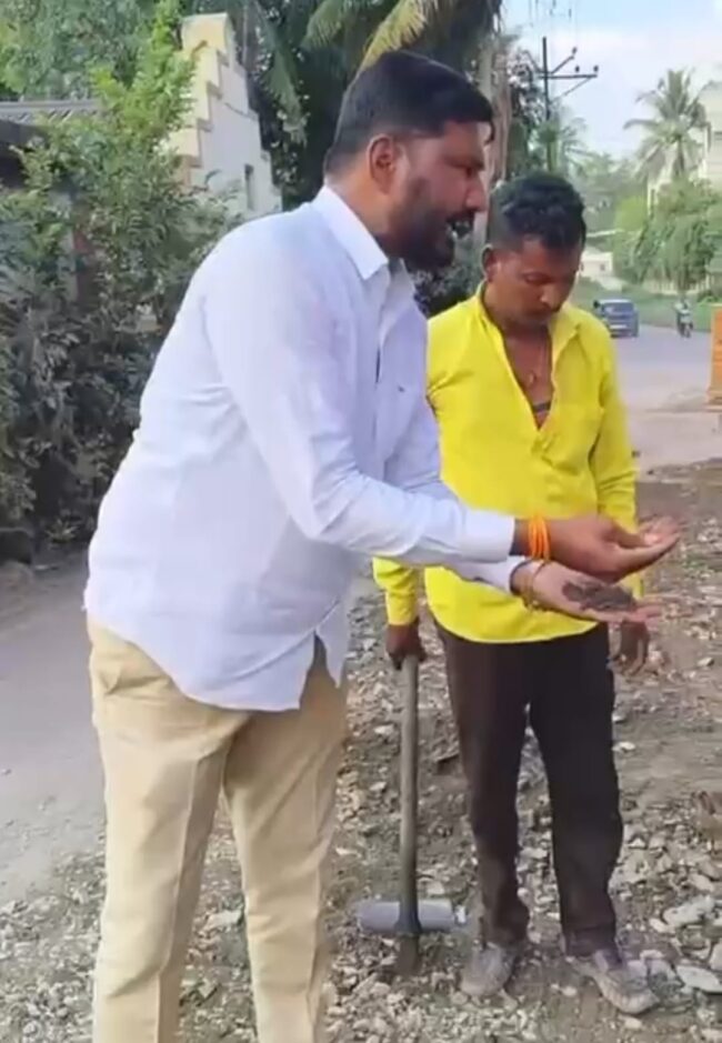 लोणी काळभोर-(हवेलीनामा वृत्तसेवा) पूर्व हवेली तील लोणी काळभोर येथील लोणी काळभोर रामदरा रस्ता चार पाच महिन्यांतच खड्डेमय झाला असून त्यावर डागडुजी करण्यात आली ती देखील माती मिश्रित मुरूम टाकून यावर शिवसेनेचे संतोष भोसले यांनी संताप व्यक्त करुन निकृष्ट रस्त्याची पोलखोल केलीय जवळपास तीन कोटी रुपये खर्च करून हा रस्ता तयार करण्यात आला होता चार पाच महिन्यांत रस्ता खराब होतोच कसा यात मोठा भ्रष्टाचार झाला असल्याचा आरोप नागरिकांनी केला असून हा ठेकेदार प्रशासन काळ्या यादीत टाकणार का याकडे आता नागरिकांची लक्ष लागून राहिली आहे