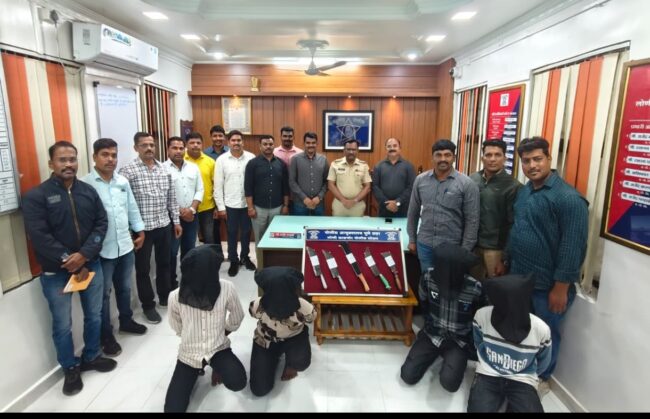 थेऊर -(हवेलीनामा वृत्तसेवा) लोणी काळभोर पोलिसांनी ५ धारदार कोयत्यासह तडीपार गुन्हेगार व इतर ३ गुन्हेगारांना केली अटक