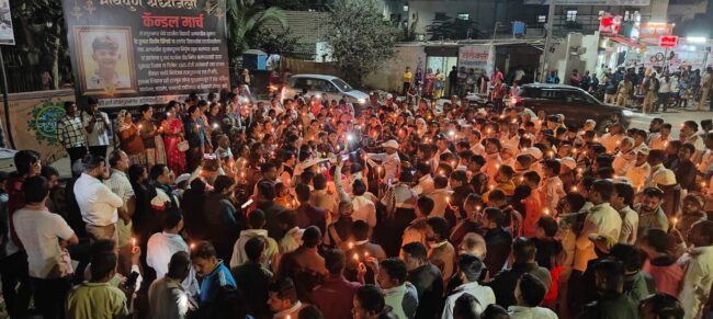 राजगुरुनगर : (हवेलीनामा प्रतिनिधी) : राजगुरूनगर शहरातील अल्पवयीन मुलाने अल्पवयीन मुलाची धारदार शस्त्राने वार करून हत्या केल्याच्या घटनेचा सर्व स्तरातून निषेध व्यक्त केला जात असून नागरिकांनी शहरात मेणबत्ती मोर्चा काढला.
