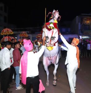 सातारा (हवेलीनामा प्रतिनिधी) सातारा शहरा नजीकच्या करंजे गावात गेली अनेक वर्षे फुलांचा व्यवसाय करणाऱ्या नारायण उर्फ बाळू शेठ वाघ यांनी केवळ हौसेपोटी सारंगखेडा येथून हा राजू 3 नावाचा दोन वर्षाचा पांढरा शुभ्र देखणा घोडा सातारकरांच्या विविध शुभ कार्यामध्ये सहभाग व्हावा या इच्छेने आणि संकल्पाने आणलेला आहे.
