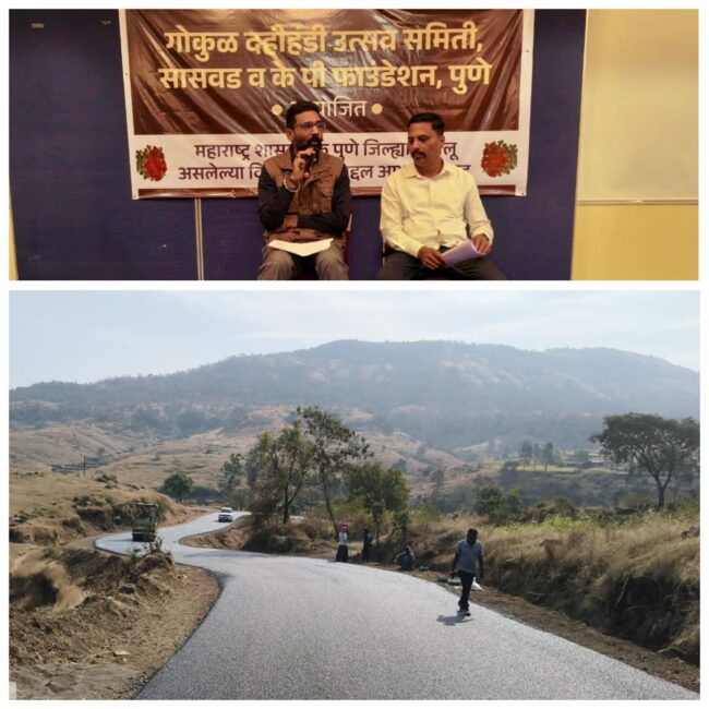 पुणे (हवेलीनामा वृतसमूह) मुख्यमंत्री देवेंद्र फडणवीस यांच्या नेतृत्वाखाली पुणे जिल्ह्याच्या ग्रामीण भागात विशेषतः पुरंदर आणि लगतच्या तालुक्यांमध्ये सरकारकडून दर्जेदार विकासकामांचे जाळे उभारण्यात आल्यामुळे पुरंदर व इतर तालुक्यांच्या विकासाला योग्य दिशा मिळेल, असा विश्वास व्यक्त करून पुरंदरवासीयांनी राज्य सरकार आणि सार्वजनिक बांधकाम विभाग यांचे आभार मानले आहेत.