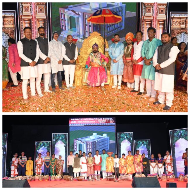 लोणी काळभोर (हवेलीनामा वृतसमूह) पुणे सोलापूर महामार्गवरील कदमवाकवस्ती येथील रेनबो इंटरनॅशनल स्कुलमध्ये दोन दिवसीय वार्षिक स्नेहसंमेलन नुकतेच पार पडले. मुलांच्या अंगी असणाऱ्या कलागुणांना वाव देण्यासाठी हे एक उत्तम व्यासपीठ उपलब्ध करून देण्याचा आणि त्यांच्या गुणांचं कौतुक करून पुढे जाण्याची प्रेरणा देण्याचा हा सोहळा होता.या संपूर्ण सोहळ्यात शेकडो प्रेक्षकांपुढे आत्मविश्वासाने आपल्या कलाविष्काराचे सादरीकरण करणाऱ्या बालकलाकारांचे सर्वच उपस्थितांनी तोंडभरून कौतुक केले.कलेच्या वेगवेगळ्या छटांचे सादरीकरण असणारे “सतरंगी” आणि शिवविचारांचा जागर करणारे “शिवचरित्र” या दोन्ही संकल्पना प्रेक्षकांच्या पसंतीस उतरल्याचे दिसून आले.
