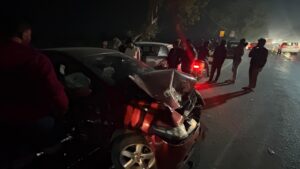 उरुळी कांचन – यवत मध्ये दरम्यान सोलापूर महामार्गावरील खामगाव फाटा येथे स्विफ्ट व होंडा सिटी मोटार यांच्यात जोरदार अपघात झाला. अपघात इतका भीषण होता की दोन्ही वाहनांचे मोठे नुकसान झाले. सुदैवाने या अपघातात जीवितहानी टळली.