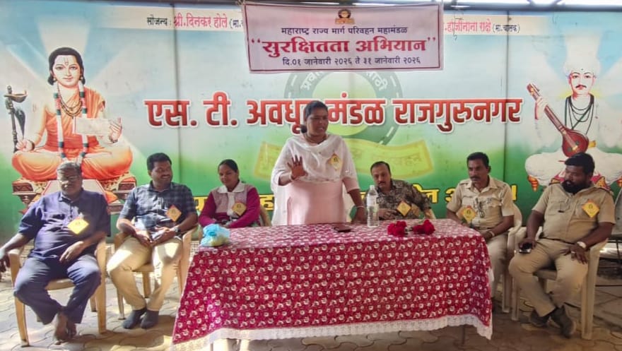 महाराष्ट्र राज्य मार्ग परिवहन महामंडळाच्या राजगुरुनगर एसटी आगारात आयोजीत सुरक्षितता अभियानाच्या उद्घाटनप्रसंगी त्या बोलत होत्या. यावेळी व्यासपिठावर कनिष्ठ आगारव्यवस्थापक उज्वला कुटे, वाहतूक निरीक्षक नासिर हवालदार, आगार लेखाकार हिरामण दिघे, खेड तालुका पत्रकार संघाचे सचिव किरण खुडे, वाहतूक नियंत्रक विष्णू राठोड उपस्थित होते.