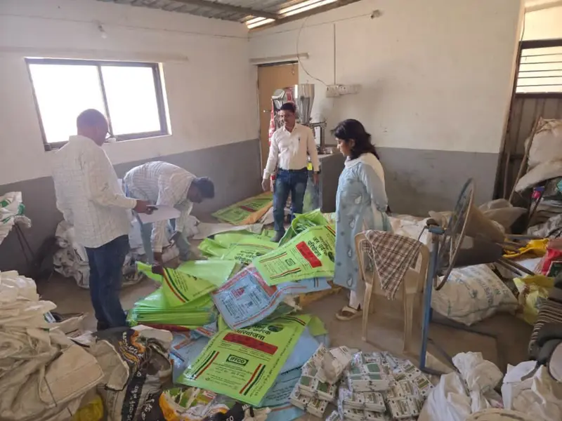 रासायनिक खत बोरिक ऍसिड नॅशनल ऍग्रो हायटेक या कंपनीच्या नावे सुमारे । मेट्रिक टन कीटकनाशक क्लोरोपायरीफॉस १० टक्के दाणेदार कीटकनाशक सुमारे २.७ मॅट्रिक टन तणनाशक ग्लाय फॉसेट ४१ टक्के एस एल या तणनाशकाचे सुमारे एक लिटर पॅकिंग मधील ३४० बाटल्या संशयित तननाशक ग्लायफॉसेट २०० लिटर बॅरल मध्ये आढळून आले. याचा वापर एक लिटर पॅकिंग मध्ये करण्यासाठी येणार होता. उंदीर नाशक झिंक फॉस्फेट सुमारे १२ किलो १० ग्रॅम पॅकेटमध्ये तसेच संशयित कीटकनाशक अल्युमिनियम फॉस्फाईड १० ग्रॅम पॅकेटमध्ये सुमारे २० किलो आढळून आले. त्याचबरोबर पॅरादीप फॉस्फेट लिमिटेड तथा जय किसान कंपनीच्या १८ : ४६ व १०:२६.२६ या खताच्या नवीन छपाई केलेल्या सुमारे १५८० रिकाम्या गोण्या इंडियन पोटॅश लिमिटेड या कंपनीच्या म्युरेट ऑफ पोटॅश या खताच्या सुमारे २५० रिकाम्या गोण्या आणि इफको को-