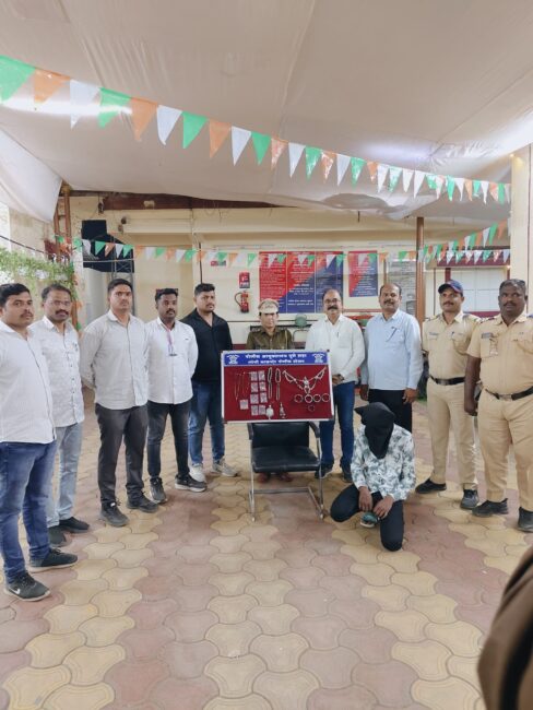 तपास अधिकारी अनिल जाधव व तपास पथकास गोपनिय बातमीदारामार्फत माहिती मिळाली की ही चोरी आदित्य अरुण गरड, वय १९ वर्षे, रा. फ्लॅट नं.३०५, शुभयोग रेसिडन्सी, कदमवाकवस्ती, याने केली आहे यावर तपास पथक या ठिकाणी जाऊन अवघ्या ०२ तासांत संशयीतास शिताफीने ताब्यात घेऊन त्यांचेकडे या चोरीच्या संदर्भात तपास केला असता त्याने गुन्हा केल्याचे तपासात निष्पन्न झाले. त्याच्याकडुन लोणी काळभोर पोलीसांनी ३५ ग्रॅम सोन्याचे दागिणे व ५२० ग्रॅम चांदीचे दागिणे असा एकुण किंमत ४,२५,०००/- रुपये किंमतीचा मुद्देमाल जप्त करुन गुन्हा उघडकीस आणला आहे.