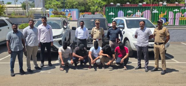 गुन्हयात १) सागर दत्ताञय झुरुंगे, वय ३९ वर्षे २) विजय सुरेश वाळुंज, वय ३८ वर्षे ३) राजु विजयकुमार सहाणे, वय ३२ वर्षे ४) रुपेश शिवाजी गावडे, वय ३८ वर्षे राहणार सर्व लोणीकंद ता हवेली जि पुणे ५) प्रकाश बाळासाहेब ऊर्फ बाळु राउत, वय ३४ वर्षे रा तुळापुर ता हवेली जि पुणे यांना अटक करण्यात आली असुन त्यांना न्यायालयाने पोलीस कोठडी मंजुर केली आहे. तपासामध्ये २ फॉरच्युनर व १ स्कॉर्पिओ, १ मोबाईल फोन असा एकुण ४९,१०,०००/- रू. किं.चा. मुद्देमाल जप्त केला आहे.